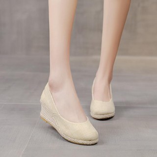 웨지힐 여성 삼베 통굽 스트랩 가보시힐 미들힐 키높이 펌프스 샌들
