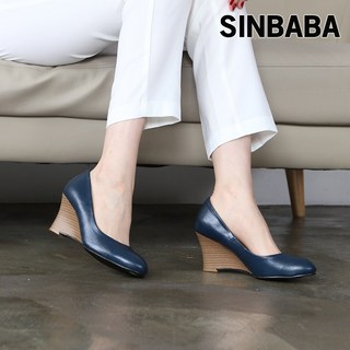 신바바 소가죽 웨지힐 펌프스 7cm굽 여성 구두 AMG006