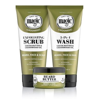 시더우드 오일 남성용 소프트샤인-카슨 매직 면도 수염 그루밍 키트 비어드 버터 스크럽 앤 클렌저 페이셜 헤어 케어 선물 세트 1 키트, 1개