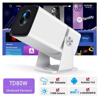 미니 빔프로젝터 초단초점 업그레이드버전 LED 휴대용 와이파이 홈시네마 빔 프로젝터 4K 풀 HD FHD TD80W 안드로이드 3D 홈 시어터 회의 비디오 영화 PK HY320 가, 2) Android Version - 미국 플러그