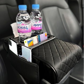 하루꿈 차량용 팔걸이쿠션 현대 키아 팔꿈치쿠션 틈새 수납 자동차 컵홀더, 1개, 블랙