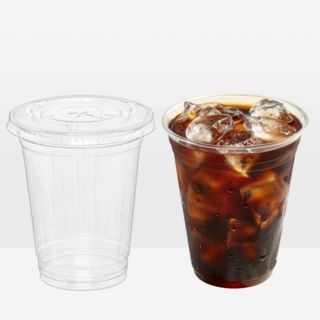 [이지앤] 투명 PET 아이스컵 + 평판 뚜껑, 100개, 1세트, 410ml
