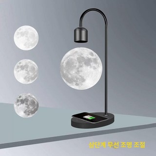공중부양 달조명 달빛 가로등 떠있는달 무드등 자기부상 생일선물 달 조명 로멘틱, 밝기조절-블랙-무선충전, 3단계 조명-월광 백무선충전