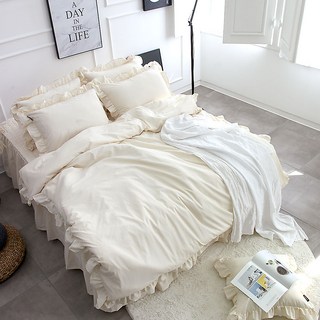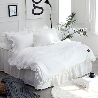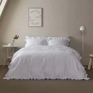 [다인데코] 루이스 광목 이불커버 (SS/Q/K), 프릴 화이트