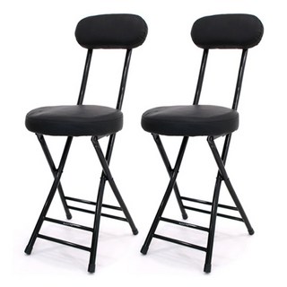 마켓플랜 심플 원형 쿠션 접이식 의자, 블랙, 2개