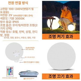 발광 공 원형 잔디 정원 USB충전식 선물 인테리어조명 구형 조명 빛 무드등 야외 집들이, B. 16 종류의 빛에 직접 연결된 35cm