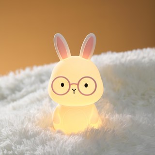 토끼 무드등 실리콘 수유등 타이머 취침등 컬러 조명, 핑크안경
