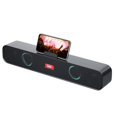 HI-PLANX 휴대폰 홀더가 있는 스피커 데스크톱/노트북/PC/패드/핸드폰용 스테레오 사운드 바 노트북 다채로운 그라데이션 조명 사운드바 USB 데스크탑 스피커 플러그 앤 플