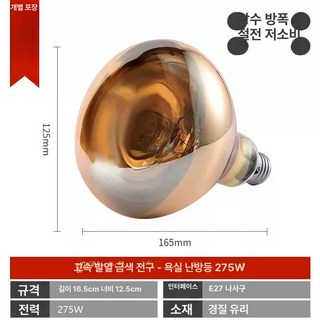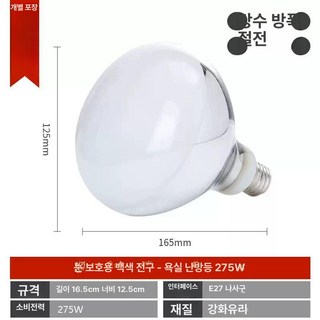 욕실 히터 전구 램프 온열 방수 가정용 근적외선, 165mm 업그레이드 눈 보호 전구-275W, 기본 색상
