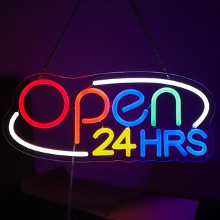 LED 네온사인 간판 영업 중 Open 24 HRS 37x16.5 cm 밝기를 조절할 수 있습니다