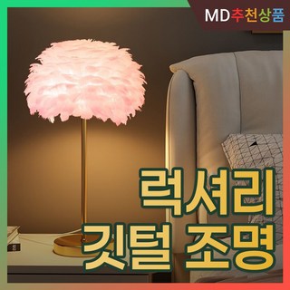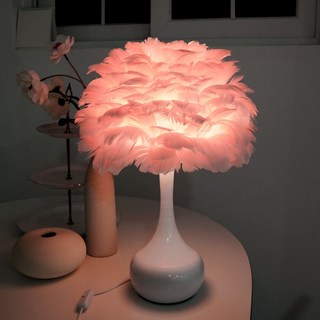 루스미오 깃털 조명 장스텐드 장식용 인테리어등 플로어램프, 탁상형, 핑크