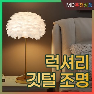 루스미오 깃털 조명 장스텐드 장식용 인테리어등 플로어램프, 탁상형, 화이트