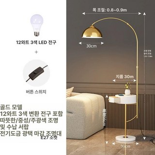 깃털 조명 스탠드 협탁 천연석 안방 플로어램프, 8033 골드-12W 삼색 변환