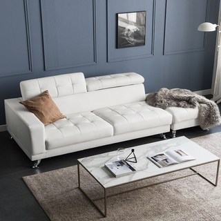 자네트 로미노 3인용 가죽쇼파 스툴포함, 화이트