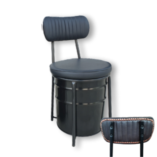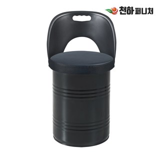 천하퍼니처 제조 NEW깡통의자 인테리어 철재 디자인 수납스툴 고기집 드럼통의자 고깃집 음식점 업소용 등받이 의자, NEW깡통의자 등받이형(블랙), 쿠션(블랙)