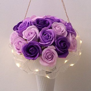 morningscent 아침향기 졸업식 기념일 콘 플라워 레이스 조명 비누꽃 조화 꽃다발, 로즈퍼플, 1개