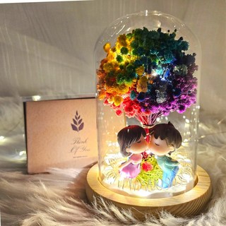 드라이플라워 안개꽃 꽃무드등 여자친구 생일 기념일 선물, 무지개안개_뽀뽀커플+튤립카드