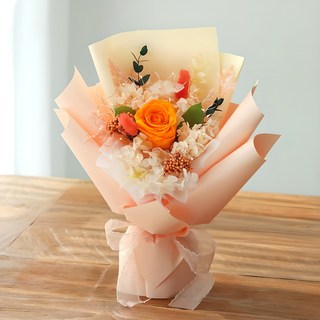 뷰티풀데코센스 생화 프리저브드 LED전구 꽃다발 + 핸들 캐리어, 오렌지, 1세트