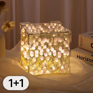 투데이리빙 1+1 LED 튤립 무드등 DIY 키트 20송이 큐브형 건전지 포함 플라워 생일 인테리어 장식 수면등 취침등 수유등 셀프 무드 조명 만들기, 핑크+그린, 2개, R98182A