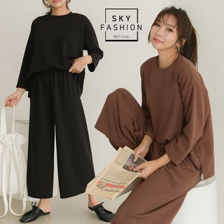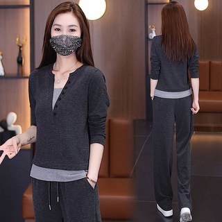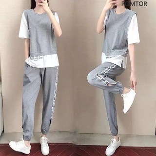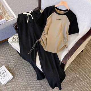 봄 여름 여성 캐주얼 상하세트 라운드넥 반팔 티셔츠+루즈핏 롱 팬츠 레이어드투피스