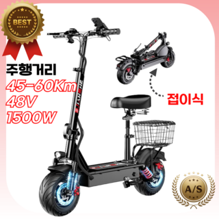 모빌리아 앉아서타는 접이식 전동킥보드 성인용 배달 대리기사 대학생 출퇴근용 48V 1500W 퀵보드, 45-60Km, 1개