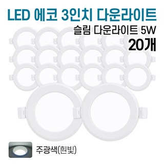 라인라이팅 LED 에코 3인치 다운라이트 5W (벌레유입방지/방습), 주광색(흰빛), 20개
