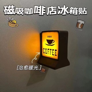 미니 조명 일본 라이트 레트로 자석(배터리) 미니어처 커피 소품, 1개, 커피 라이트 냉장고 자석(배터리 모델)