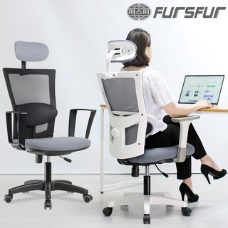 Kurua 사무용 메쉬의자 헤드레스트/팔조절, 화이트+블랙