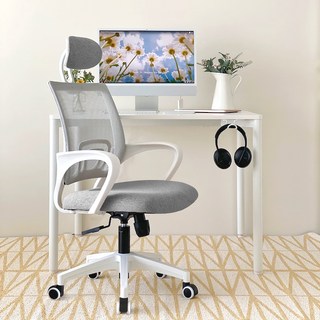 투에스리빙 사무용 푹신한 컴퓨터 의자, 화이트 그레이