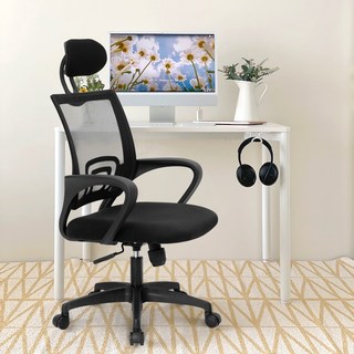 투에스리빙 사무용 푹신한 컴퓨터 의자, 그레이 헤드레스트