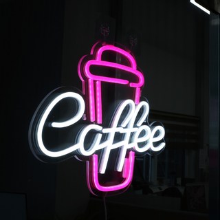 HK.sell 커피머그 네온사인 간접조명 인테리어 포인트, 핑크+화이트