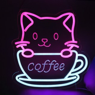 LED 네온사인 간판 커피 새끼 고양이 coffee 무드등 장식등 밝기를 조절할 수 있습니다 32x32.5 cm, BF-5V003