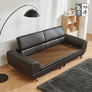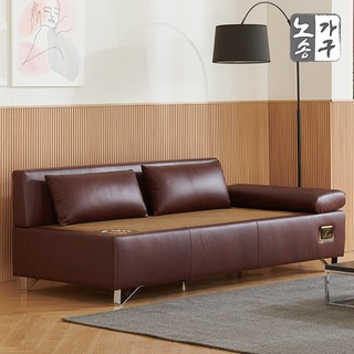 노송가구 쉐어링 천연가죽 참숯 황토볼 3인용 침대형 온열소파, 쉐어링 참숯 3인, 와인투톤