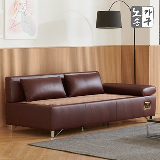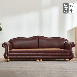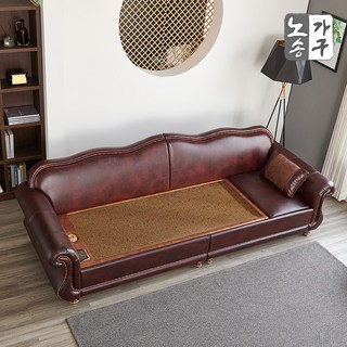 노송가구 예림 천연가죽 황토볼 흙쇼파 3인 카우치 침대 온열소파, 와인투톤