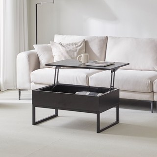 채움가구 거실 수납 더블 리프트 테이블, 800올블랙