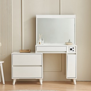 원마인드 비비 화장대 와이드체스트 서랍장+입식ㄱ자받침대, 비비화장대 화이트