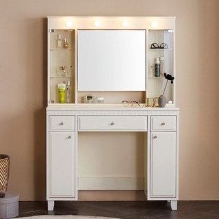 파로마 이프 노아 LED 확장형 수납 화장대, 화이트 FJL1085