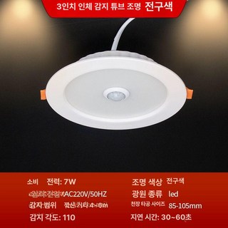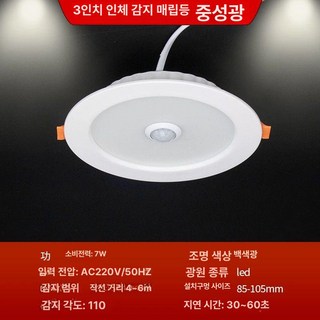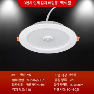 LED 에코 5인치 다운라이트 주광색 플리커프리, 1개, 3인치 인체 감지 백색광 7w