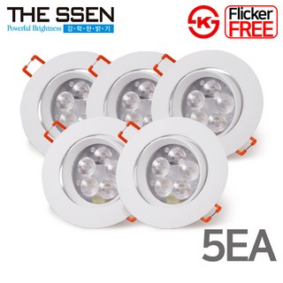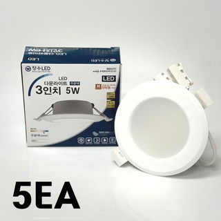 [장수램프] LED 3인치다운라이트 5W (신형) - 플리커프리 눈이 편한조명, 주광색, 5개