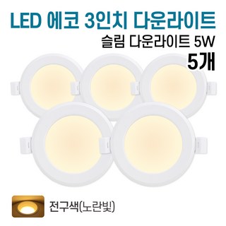라인라이팅 LED 에코 3인치 다운라이트 5W (벌레유입방지/방습), 전구색(노란빛), 5개
