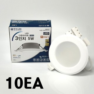[장수램프] LED 3인치다운라이트 5W (신형) - 플리커프리 눈이 편한조명, 주광색, 10개