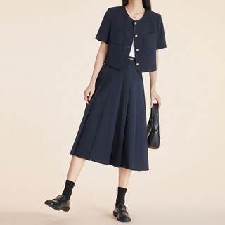 페이퍼먼츠 여름 정장 그레잇 노카라 재킷 + 플리츠 스커트 세트 10421