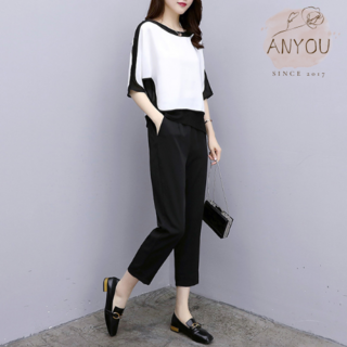 ANYOU 여성 쉬폰 상하세트 봄 여름 캐주얼 투피스