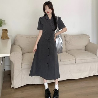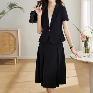 크레스티 여름 언밸런스 투피스 오피스룩 여성 정장 상의+스커트 일상 세트
