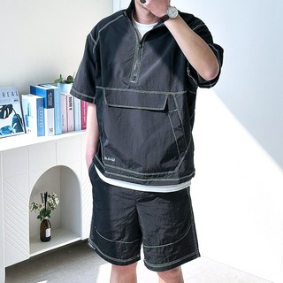 턴키 빅사이즈 오버핏 아노락 바람막이 반집업 후드 + 카고 조거 팬츠 세트