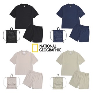 백화점매장판 내셔널지오그래픽 여름 반팔 반바지 우븐 여름 셋업 쿨티셔츠 냉감 커플 세트 스트링백 3PC